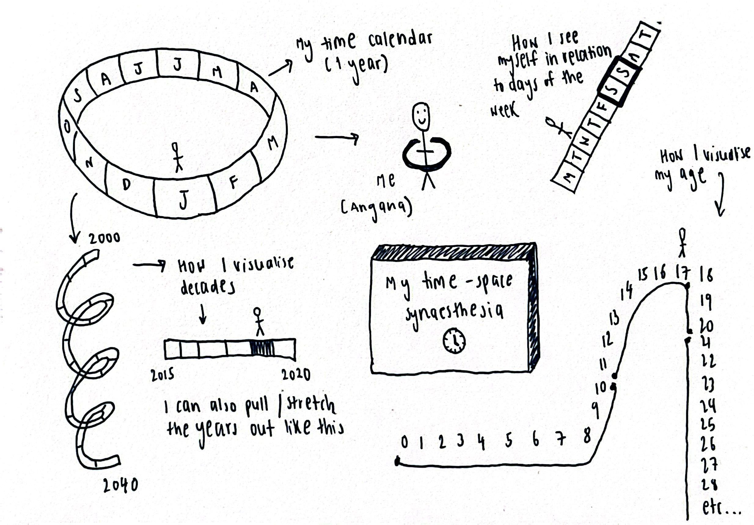 In 2022, I found out I live with a perceptual phenomenon called time-space synaesthesia. It means I can sort-of see time around me. Research on the various forms of synaesthesia is still evolving, but studies to date have shown that individuals with this type are able “to experience time units (such as months of the year) as idiosyncratic spatial forms, and report that these forms aid them in mentally organising their time.”